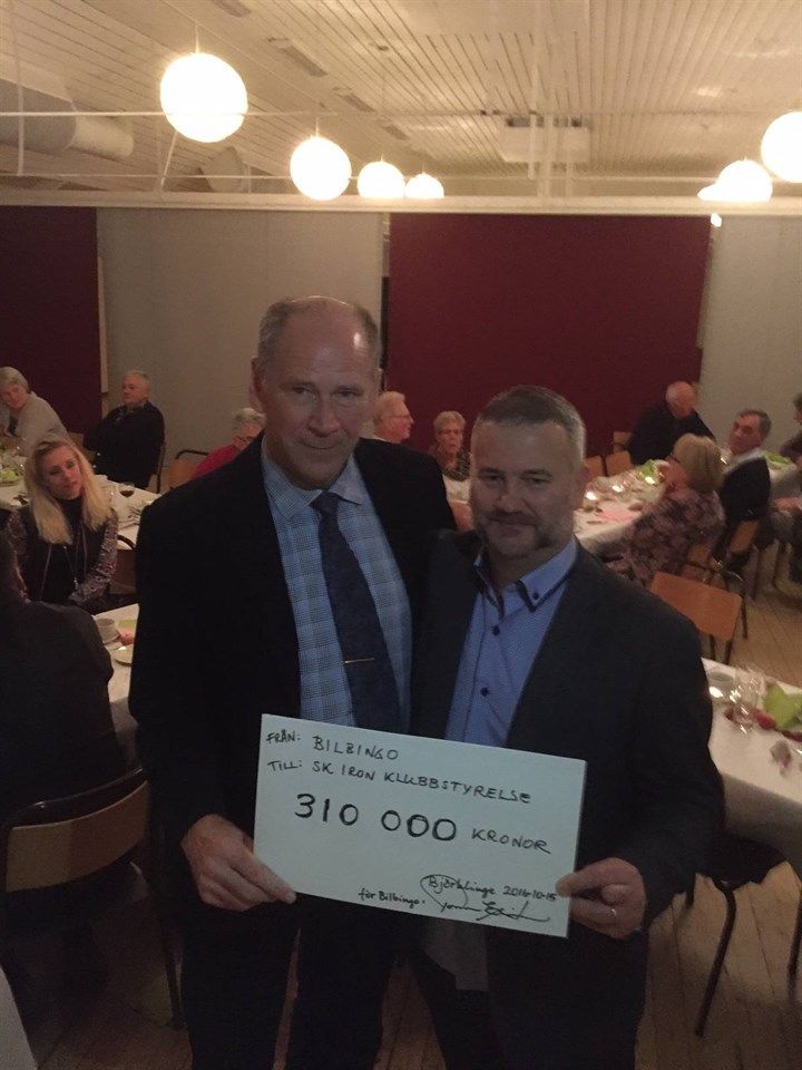 Klubbstyrelsen och Bilbingosektionen hade sedvanlig avslutningsfest för de som jobbat med verksamheten under säsongen. Ett 45-tal avnjöt god mat, trevliga tillrop och gott umgänge på dansbanan. Allas vår egen Tomas Eriksson överlämnade sedvanligt en prischeck till Klubbstyrelsen för säsongens överskott. "Ett stort tack till alla er som varit med och arbetat med bilbingon under denna säsong 2016. Er medverkan har bidragit till det goda resultatet, 310000 kr, och har på detta sätt gjort påtaglig skillnad för att framförallt våra ungdomar ska ha råd att delta i olika aktiviteter. Vi hoppas att ni alla på samma förtjänstfulla sätt kan fortsätta med detta viktiga arbete även nästa år. //Tomas Eriksson" SK Iron 31 okt 2016 0kommentarer