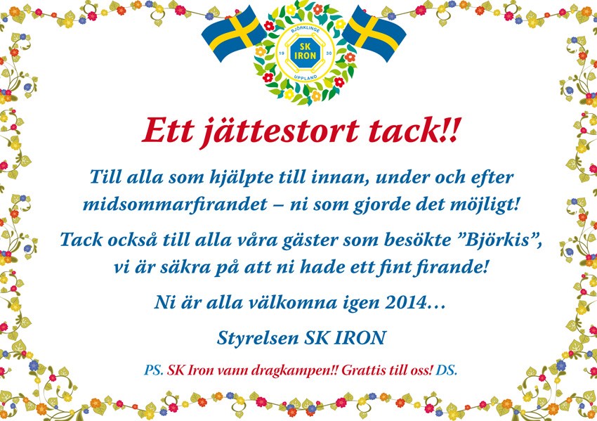 Alla ni som jobbade inför, under och efter och alla besökare! Vi ses igen nästa år! SK Iron 26 jun 2013 0kommentarer