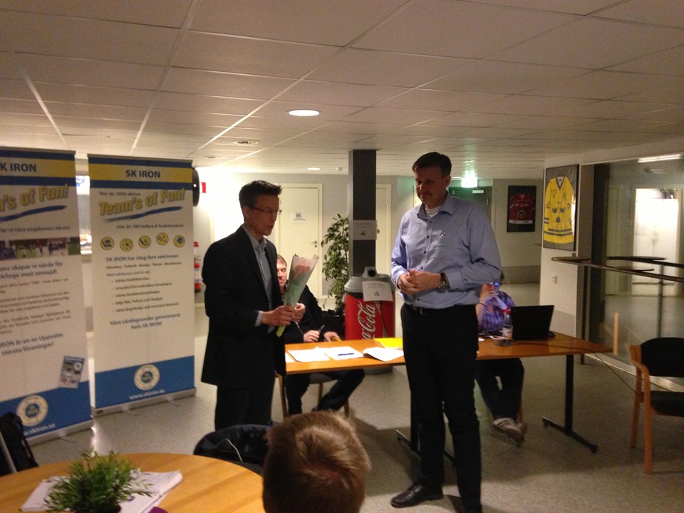 I går kväll var Tigerburen besökt av 29 medlemmar från SK Iron. Klockan blev 1900 och Leo Fällgren inledde årsmötet med några ord om året som varit. Roger Larsson fick hålla i ordförandeklubban för kvällen och vid hans sida skrev Pernilla Johansson dagens protokoll. Verksamhetsberättelsen för 2012 finns i överexemplar på kansliet för den som vill ha en kopia. Stependiet från Irons ungdomsfond tilldelades Team 02, ishockey. Närvarande att ta emot gratulationer var Anders "Acke" Wennås och Johan Sedin. Efter sedvanliga punkter i kvällens dagordning avtackades avgående styrelseledamöter. Leo Fällgren har gjort 6 år som föreningens klubbordförande och vill nu återgå till marknadsgruppen. Greger Lövén har varit föreningens kassör i klubbstyrelsen i 4 år. Linda Zander kunde tyvärr inte närvara. Supporterklubbens stependium och mjödhorn tilldelades Johan "Falle" Falk som hjärtligt arbetat med ishockey i Iron i 18 år och lovade ett antal till. Flera bilder finns i fotoalbumet. SK Iron 19 mar 2013 0kommentarer